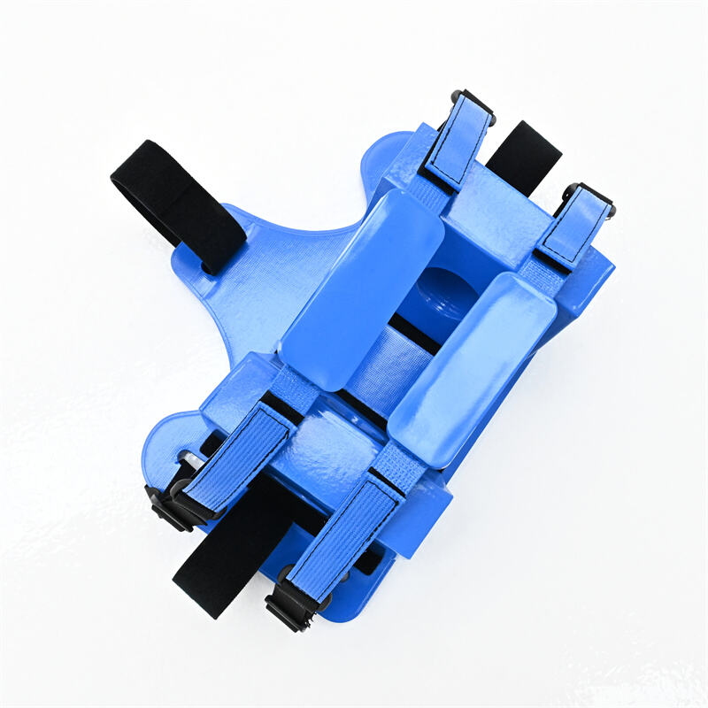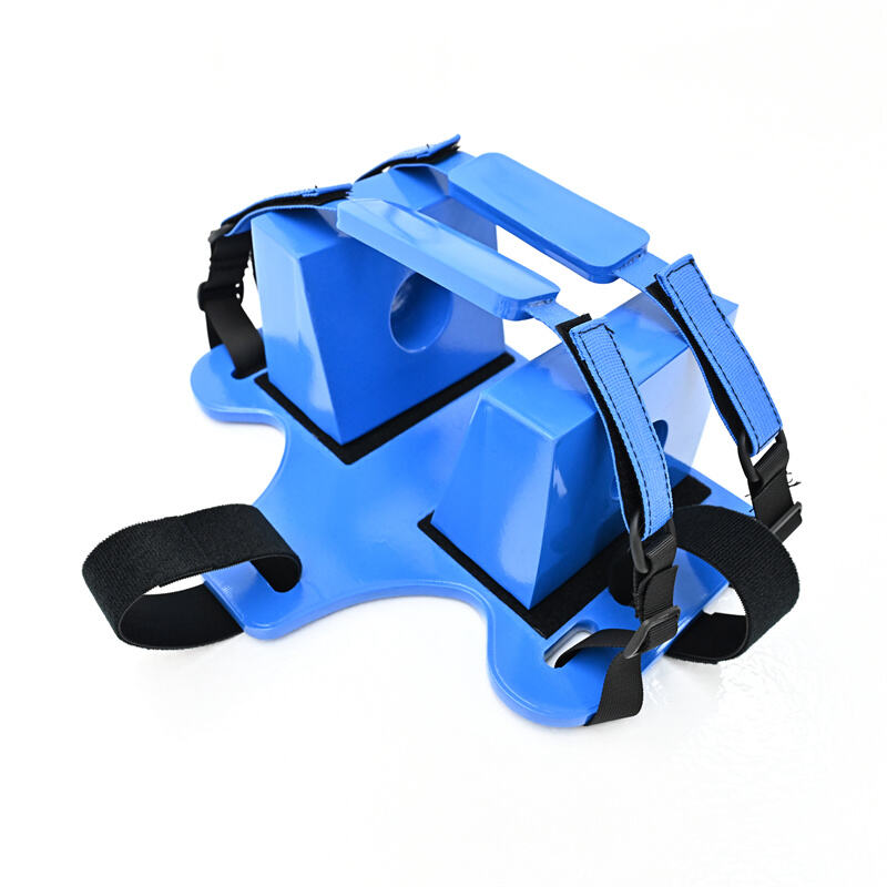 O imobilizador de cabeça é leve e de fácil limpeza, fabricado com materiais plásticos de alta densidade para resistência a perfurações e rasgos.